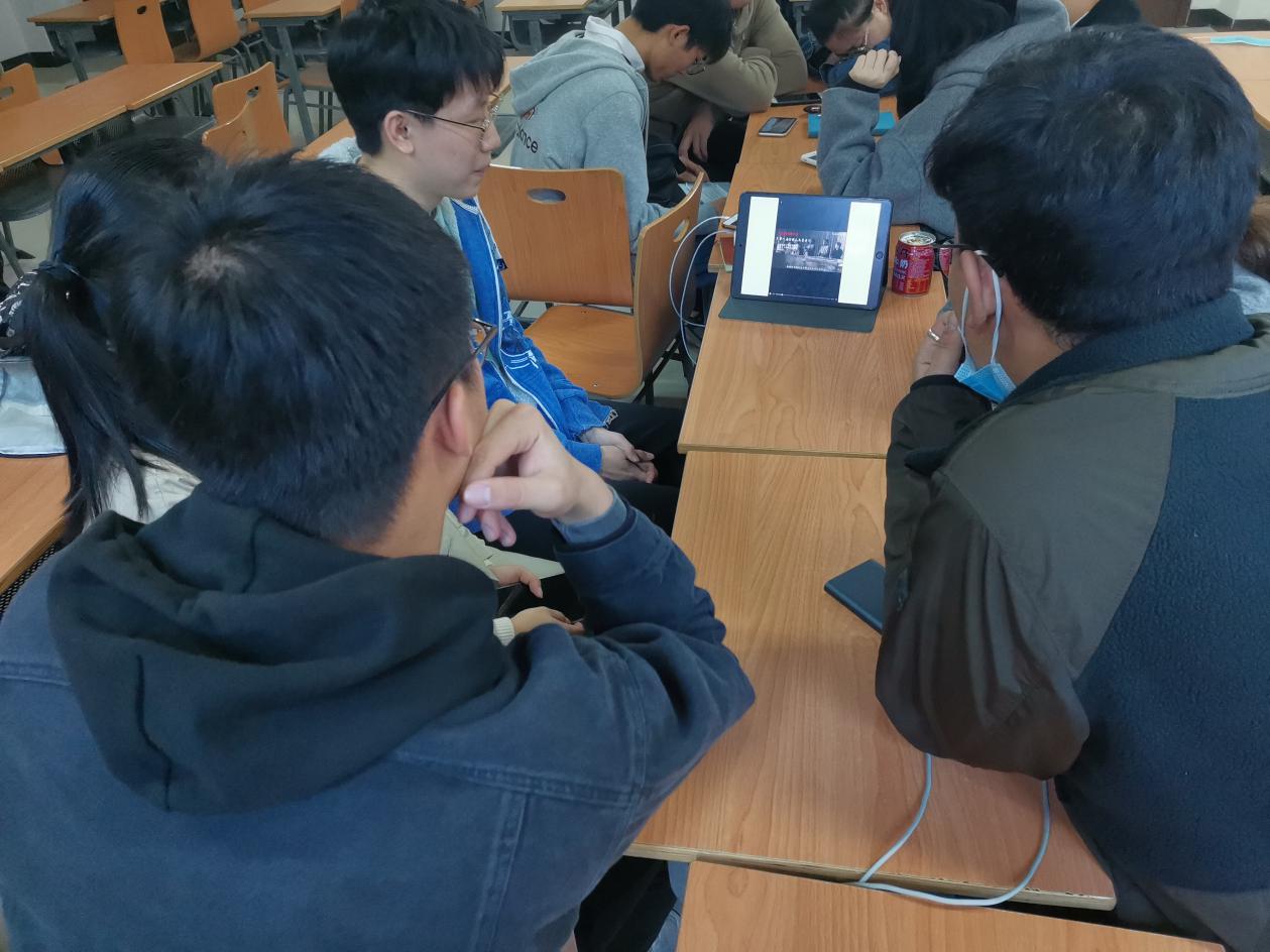 之后,各小组组内一起观看了“四史”相关视频《改革开放40年:中国经济“逆袭”史》、《中国共产党党史纪录片》、《国庆献礼!5分钟看完新中国成立至今70周年奋斗史》。视频分别对改革开放以来中国的变化与发展、中国共产党成立以来经过的重重艰难险阻,以及新中国成立以来全国人民在党的带领下努力奋斗勇往直前的奋斗史做了更加深刻和详细地介绍。视频观看结束后,各组同学纷纷表达自己的想法,在小组内展开了热烈的讨论。