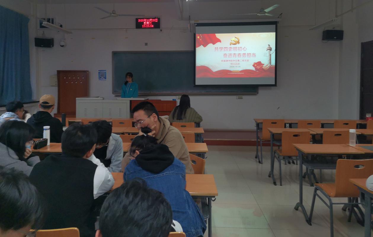 为深入学习贯彻习近平总书记关于学校党建和思政工作的重要指示批示精神,推动学生党员带头深入学好党史、新中国史、改革开放史、社会主义发展史(以下简称“四史”),新能源学院学生第二党支部于10月28日下午在主B423举行了“共学四史明初心,奋进青春勇担当”组织生活会。