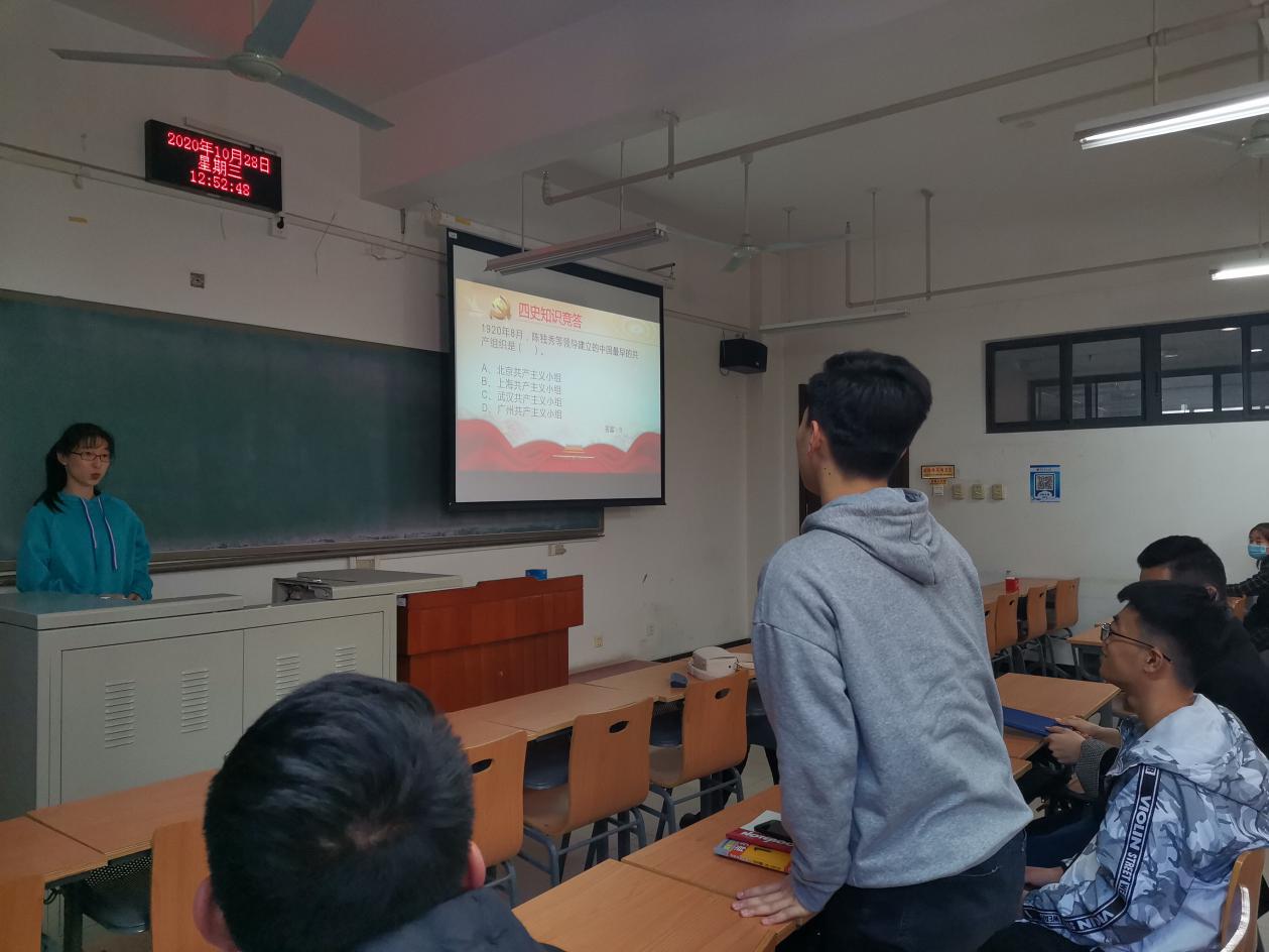 紧接着是“四史”知识竞答,与会的27名学生党员分为五组参与答题,组员之间的互相讨论,各位同志在答题过程中加强了对“四史”的认识和相关知识的储备,在不断的学习中加深对党的了解和认识。