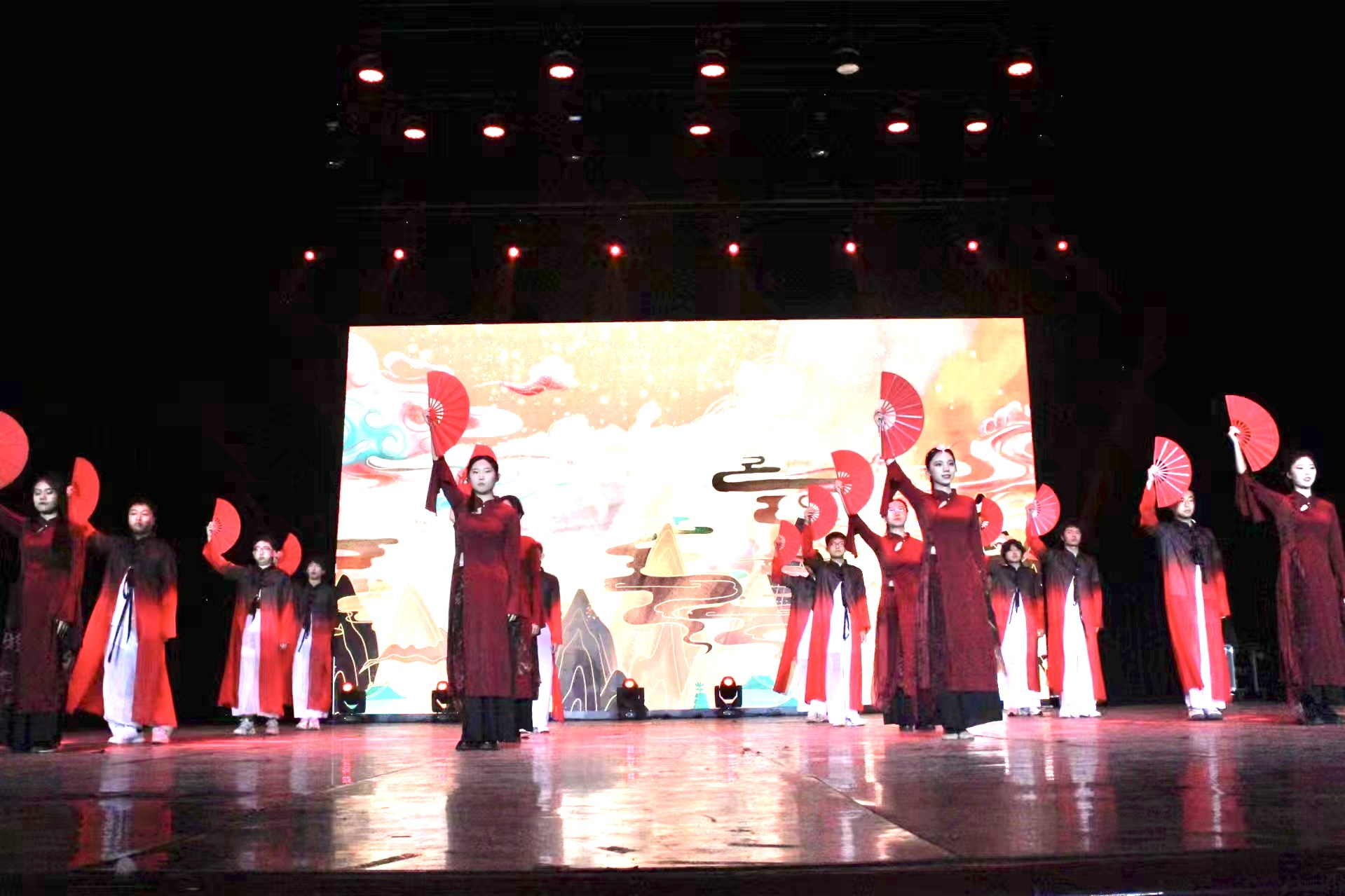 器件2201班在本届舞蹈大赛中选择了代表了力量和柔美的舞蹈《象王行》。《象王行》本身寓意着进退有度,力刚而行事不莽,是关大洲最具代表性的国风作品之一,也是其为节目《国家宝藏》量身打造的开场音乐。同学们采取扇舞的形式,以扇子为道具,通过灵动流畅的古典舞舞姿在空间中变换,加上音乐的磅礴气势,舞出一幅蛟龙觉醒的画面,展现出一种别样的美。呼应了歌曲刚中带柔,大气浩瀚的风格。器件2201班同学们的表演不仅是一场视觉的盛宴,更是对传统文化的传承与发扬,展现了中华文明的源远流长,中华优秀文化的博大精深。