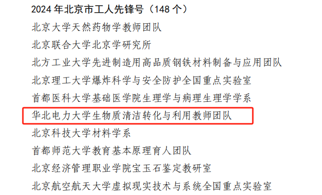4月28日,由北京市总工会、北京市人力资源和社会保障局联合举办的2024年首都劳动奖状、奖章和北京市工人先锋号评选结果揭晓,我院生物质清洁转化与利用教师团队获评北京市“工人先锋号”。