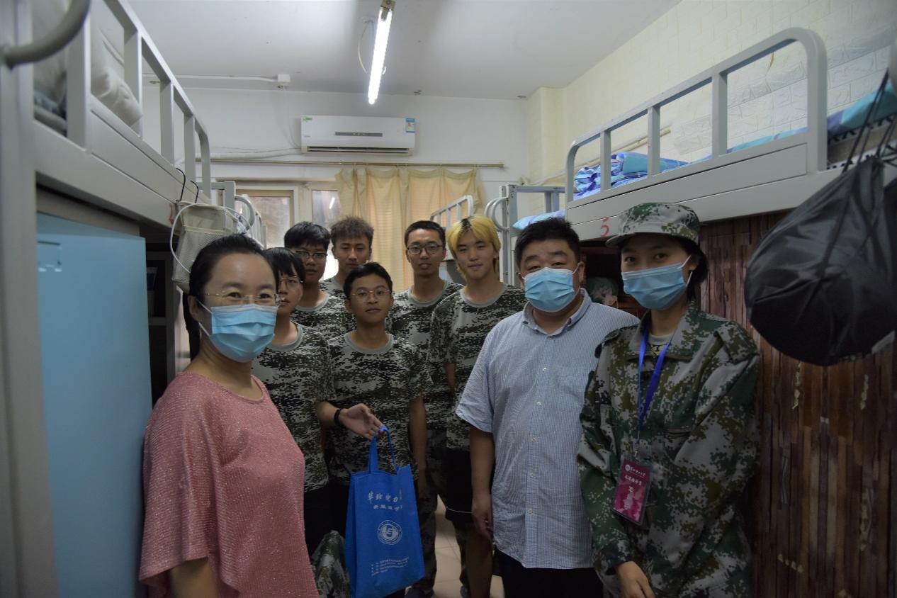 为了解新生军训情况,切实体会新生宿舍生活感受,帮助新生更快的适应学校,融入大学生活,9月15日中午,新能源学院党委书记王集令、党委副书记姜良杰前往新生宿舍进行慰问。在中秋佳节即将来临之际,向同学们送去诚挚的祝福,并向每位同学赠送一份爱心礼物。