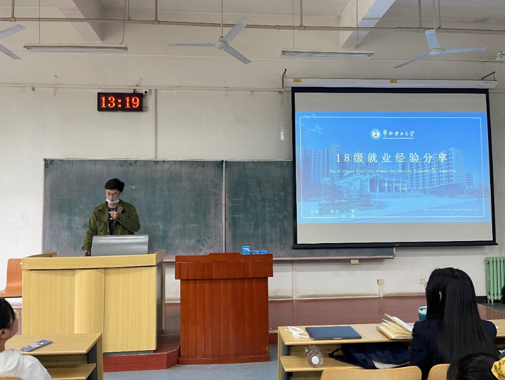最后,能材1701班的王孙悦向大家介绍了就业的相关经验。王孙悦以幽默风趣的语言从选择就业、制作简历的注意事项、招聘公告-宣讲会的准备、面试的注意事项和小技巧、签约时如何应对各种几个方向进行介绍。同学们在欢声笑语中对就业方面的问题有了具体生动的认识。能科1702班的张嘉豪学长介绍了出国留学的相关经验。从出国所需材料、如何准备及准备时间、所申请学位类型的特点、不同国家(地区)的显著差异、海外硕士的优势和劣势、中介和DIY申请的优势劣势几个方面进行了详细的讲解,为同学们开辟了新的视野,提供了另一种规划路线。随着张嘉豪学长的讲解结束,大会也到了尾声。