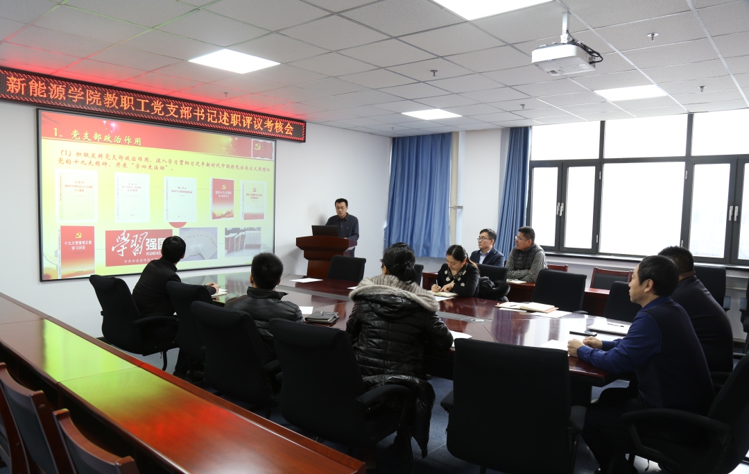 为进一步加强党支部建设,对教职工党支部加强党的政治建设、落实组织生活各项制度、开展党支部规范化建设及发挥党支部战斗堡垒作用等方面情况进行考核,根据学校《关于开展党支部换届选举暨2020年度党支部书记述职评议考核工作的通知》要求,新能源学院于12月11日组织召开了教职工党支部书记述职评议考核会,学院党委成员、教职工党支部书记、教研室主任参会,会议由学院党委书记王集令主持。