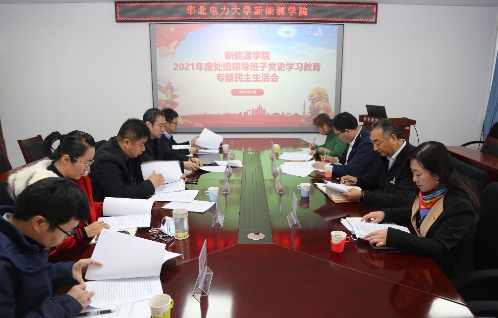 根据《关于召开处级领导班子党史学习教育专题民主生活会的通知》安排部署和要求,新能源学院党委于2022年1月14日上午在主楼B609组织召开了处级领导班子民主生活会,党建工作联络员李金全、副处级组织员张江昆、葛红、副处级纪检员白静列席指导。学院领导班子全体成员参会,会议由学院党委书记王集令主持。