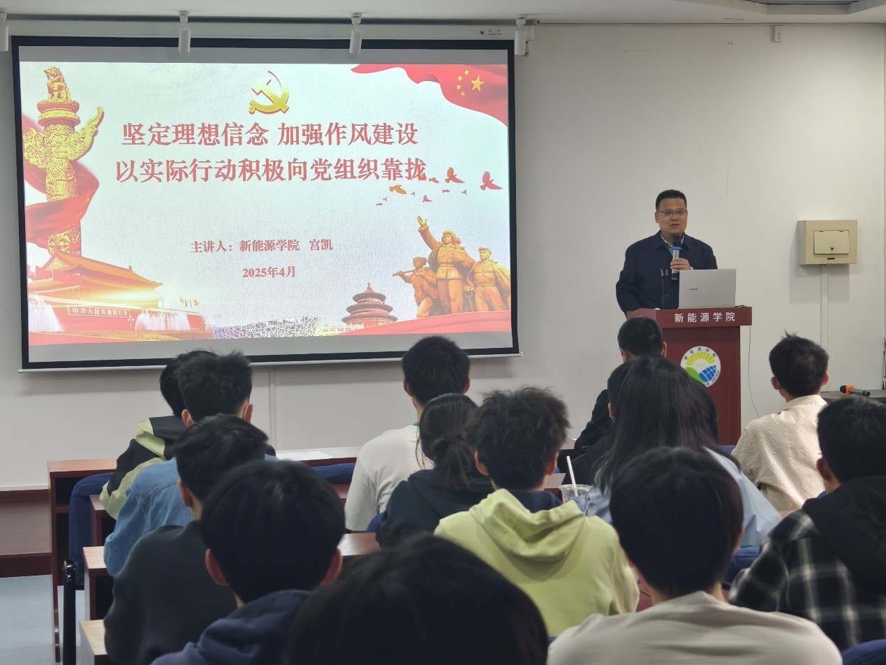 学院党委书记宫凯为培训班学员带来了题为《坚定理想信念,加强作风建设,以实际行动积极向党组织靠拢》的第一堂党课。他首先阐释了“什么是入党动机”,对“正确的入党动机”提出要求;接着他指明“为什么要端正入党动机”以及“如何端正入党动机”;然后以“习近平总书记的入党之路”为例,强调了正确的入党动机对党员始终保持先进性的重要作用;最后他指出,要创造条件,以实际行动入党。他要求培训班学员自觉加强党性锻炼,加强党的理论知识的学习;努力学好科学文化知识,提高自身素质,打牢为人民服务的基础;不断增强为人民服务的意识;用党员标准严格要求自己,实践“四个统一”,做社会主义事业的建设者和接班人。他还为学员们解读了深入贯彻中央八项规定精神学习教育的主要内容,要求学员们深入学习领会本次学习教育的重要精神。作为新能源学子,认真思考“教育强国背景下,新能源学子何为”,深入思考如何做到知行合一,以实际行动向党组织靠拢。