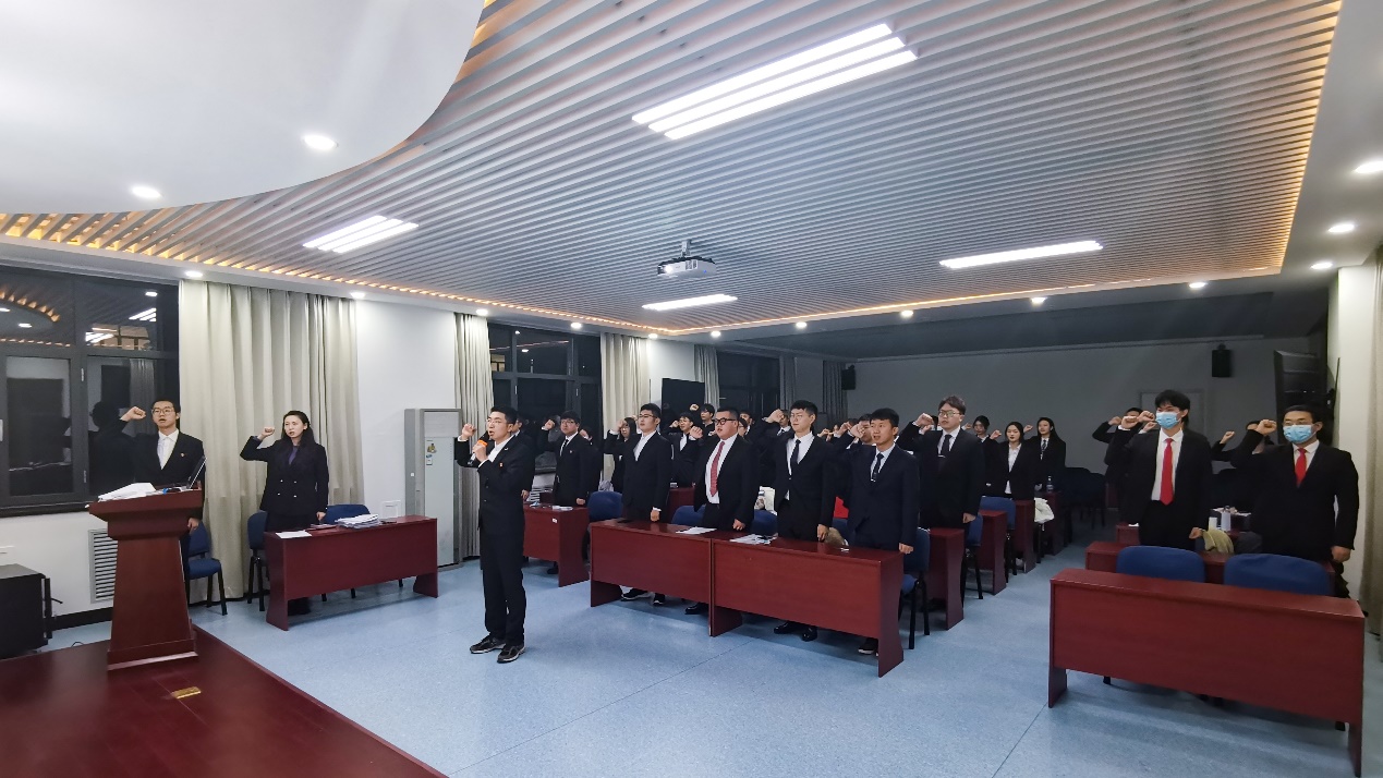 大会最后,各位预备党员轮流表态发言,再次表达了自己入党的决心以及今后的努力方向。参会成员共同宣读入党誓词,合唱《国际歌》。杨子发老师希望各位同志增强责任意识,在学习、生活和工作中起到积极带头作用,不忘初心,不断提升自己各方面的能力和水平,更好地践行为人民服务的宗旨。