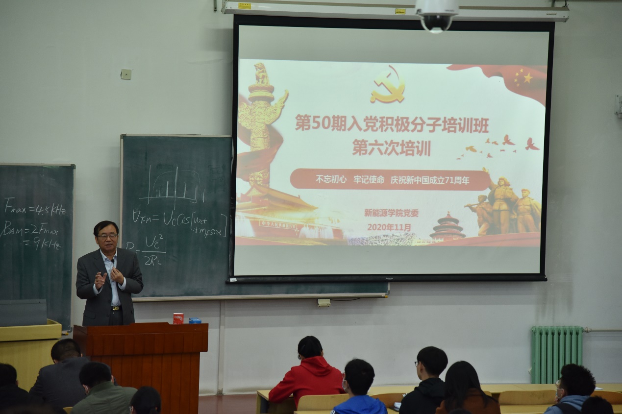 2020年11月4日,新能源学院第50期入党积极分子培训班结业典礼暨学生党员成长导师受聘仪式在主B101召开。本次活动旨在加强入党积极分子的思想建设,进一步推进学院“三全育人”工作的开展。新能源学院党委书记王集令、党委副书记姜良杰、田德教授、辅导员杨光出席此次活动。