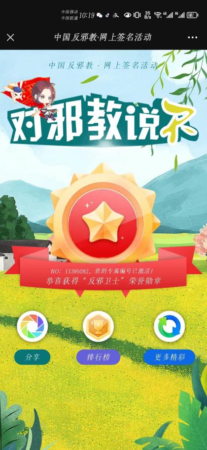 大数据时代,海量信息纷繁复杂,为增强学生安全意识和警惕性,学院积极组织学生响应“中国反邪教——网上签名活动”,坚定承诺对邪教说不,坚决不听信、不传播、不参与邪教活动,坚定理想信念,为维护校园安全弘扬正能量!