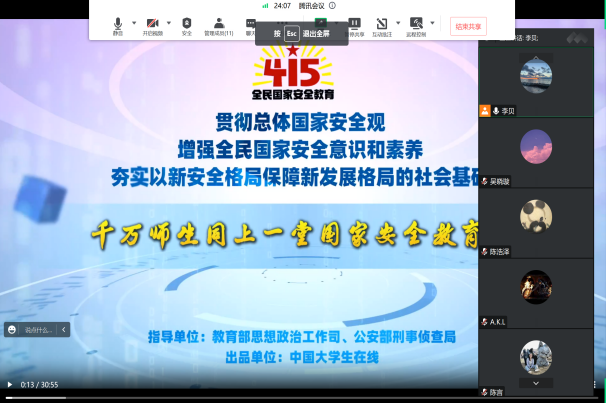 为增强学生安全教育意识,我院于4月12日晚20点组织学生一同线上观看国家安全教育宣传视频。各年级以不同形式分小组积极响应活动,在宿舍集体观看安全教育视频。视频为学生介绍全民国家安全教育日的来历、意义和国家安全知识,让国家安全观念入脑入心。观看过后,许多同学表示受益匪浅,深有感悟。