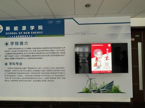 新能源学院通过媒体滚动播放等多种方式,拓宽教育的空间和渠道,把国家安全教育渗透在日常宣传教育,让学生了解国家安全的重要性以及当下的国际形势和时事动态,有效培养学生的国家安全意识,激发学生的爱国热情,增强学生的忧患意识和建设祖国、保卫祖国的责任感,明确自己肩负的历史使命。学院还以海报形式宣传国家安全、防诈骗教育,突出“贯彻总体国家安全观,增强全民国家安全意识和素养, 夯实以新安全格局保障新发展格局的社会基础。”的主题,把功夫下在平时,防患于未然。