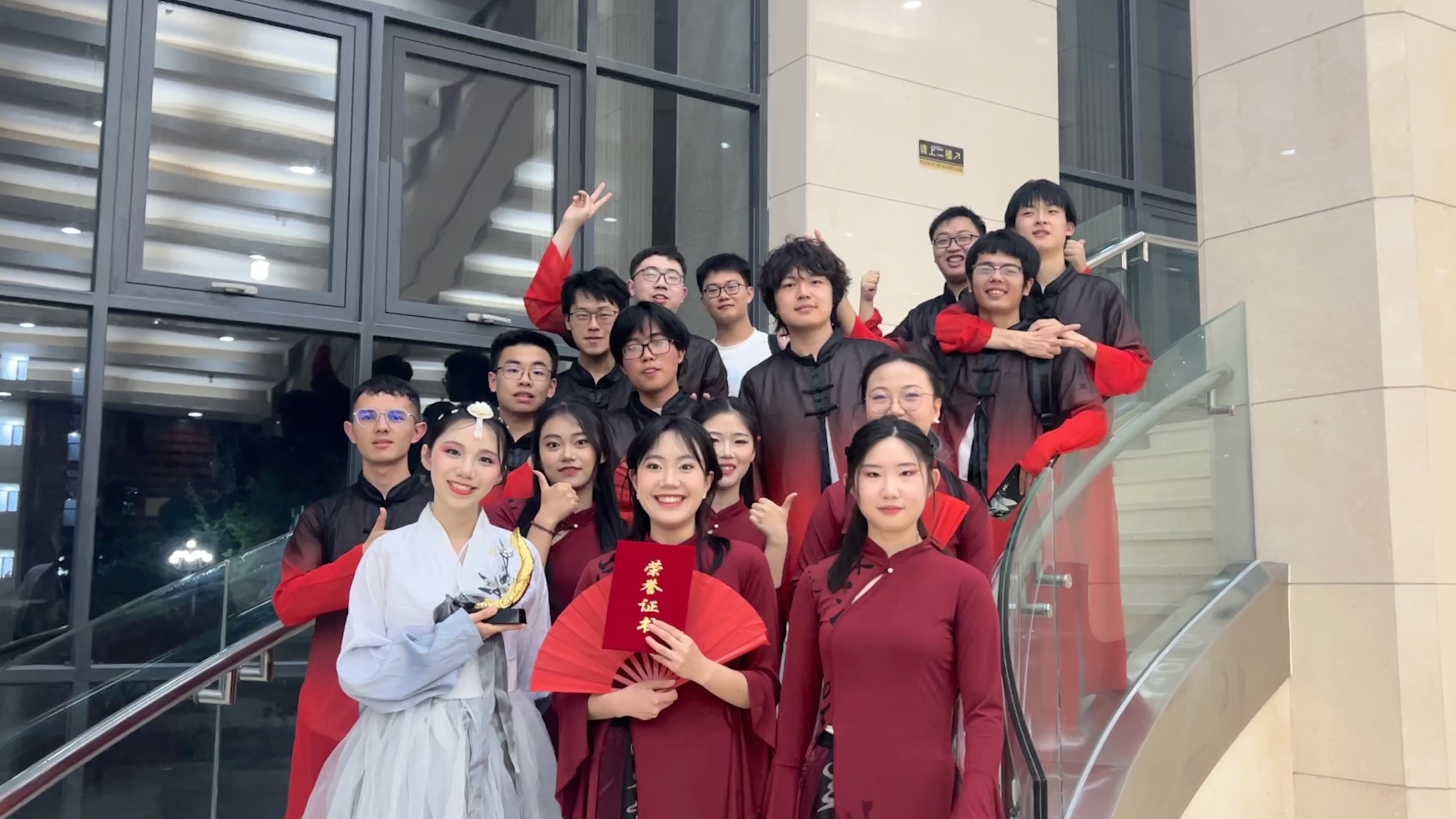 器件2201班在本届舞蹈大赛中选择了代表了力量和柔美的舞蹈《象王行》。《象王行》本身寓意着进退有度,力刚而行事不莽,是关大洲最具代表性的国风作品之一,也是其为节目《国家宝藏》量身打造的开场音乐。同学们采取扇舞的形式,以扇子为道具,通过灵动流畅的古典舞舞姿在空间中变换,加上音乐的磅礴气势,舞出一幅蛟龙觉醒的画面,展现出一种别样的美。呼应了歌曲刚中带柔,大气浩瀚的风格。器件2201班同学们的表演不仅是一场视觉的盛宴,更是对传统文化的传承与发扬,展现了中华文明的源远流长,中华优秀文化的博大精深。