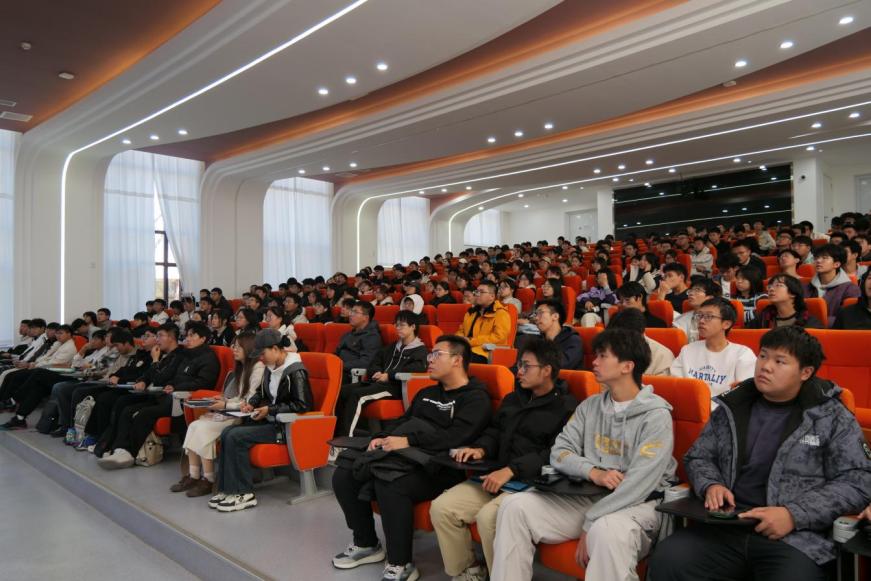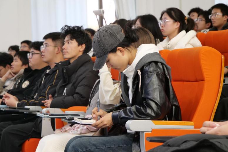 最后,陈思结合往年毕业去向数据,介绍了学校就业指导服务体系,包括就业网站、公众号、选修课程与一对一咨询服务,鼓励学生尽早树立职业目标,积极参与实践,为未来就业或深造夯实基础。