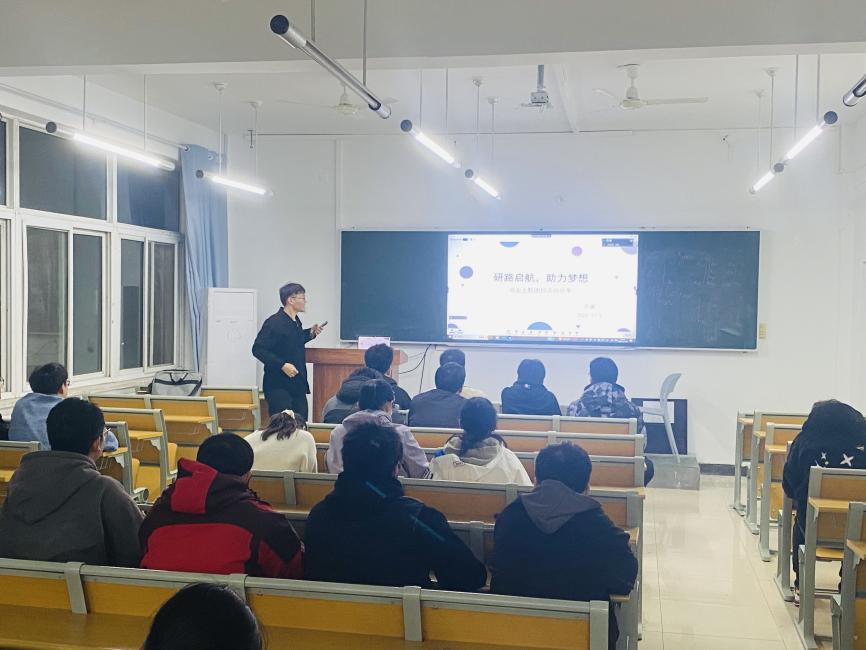 为引导新生及时适应研究生学习生活,对个人科研学业与职业生涯做出清晰规划,2023年11月5日,新能源学院在沙河院区励精楼408教室开展研究生“朋辈领航”分享交流会,2023届硕士毕业生李建、孙爽,2021级博士周新越主讲,2023级研究生参会。会议由研新能源2355班团支书高兆文主持。