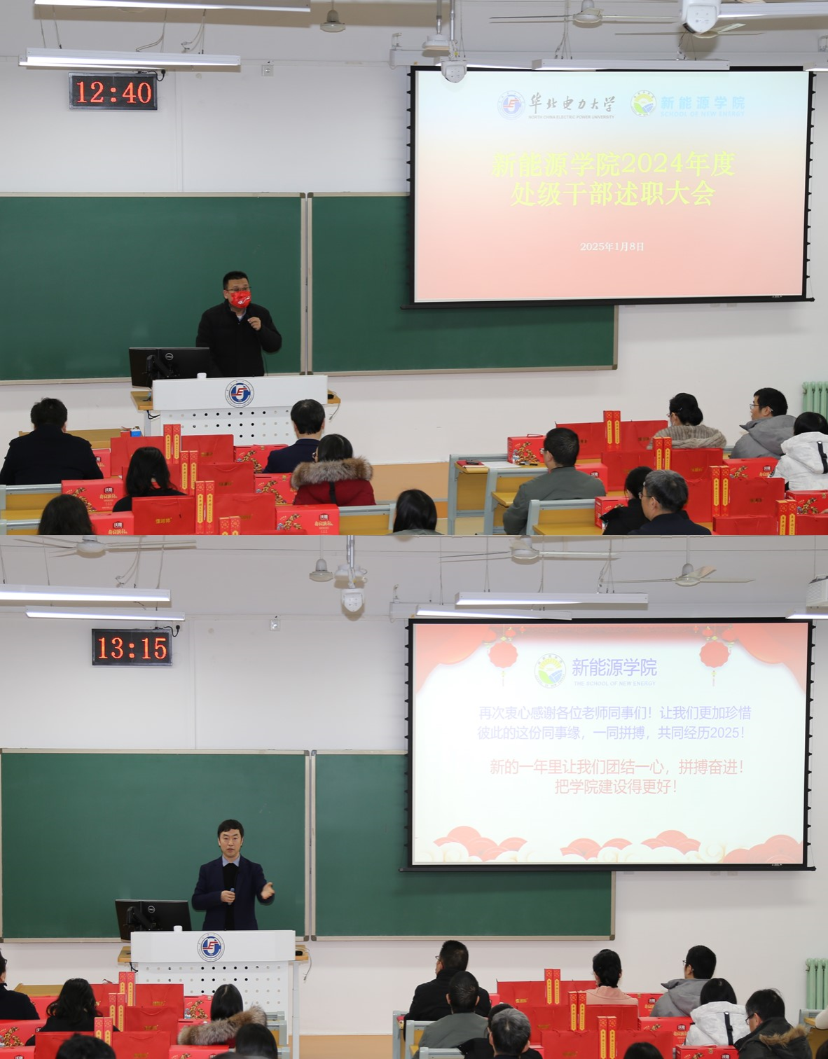 2025年1月8日,新能源学院召开2024年度领导班子及处级干部考核述职大会,学院领导班子及全体教职工参加会议。会议由学院党委书记宫凯主持,校党委组织部工作人员现场指导。