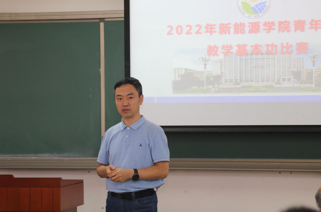 在主楼B423组织学院青年教师进行2022年度青年教师教学基本功比赛的学院决赛。此次活动得到了学院领导的高度重视,学院各教研室与工会积极配合,进行了赛前的准备工作。邀请马峻峰教授、田德教授、王福芝教授、李继红副教授出任专家评委,新能源材料与器件专业学生辛海蒙、新能源科学与工程专业学生徐宇晨、邢心然、惠捷四位同学任学生评委,学校工创中心主任杨世关教授担任评委组组长。比赛当天,学院院长李美成、书记王集令、教学副院长葛铭纬以及学院其他老师到场观摩。