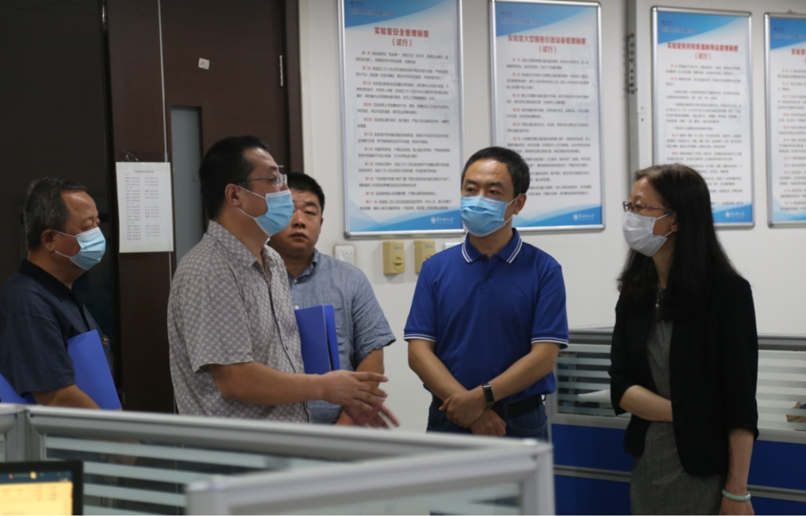 2020年9月4日上午,我校副校长毕天姝、实验室管理处副处长高继周等老师,到我院进行实验室安全现场检查。学院院长李美成和书记王集令向毕校长介绍了学院实验室的基本情况,并陪同毕校长一行共同随机抽检了学院的多间实验室。