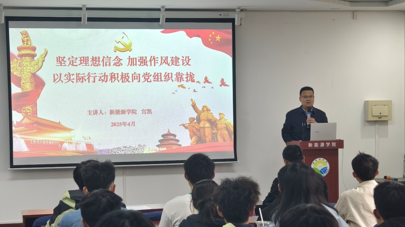 4月8日下午,新能源学院举办“书记讲党课”暨第59期入党积极分子培训班开班仪式。学院党委书记宫凯为培训班学员带来了题为《坚定理想信念,加强作风建设,以实际行动积极向党组织靠拢》的第一堂党课,为学员们解读了深入贯彻中央八项规定精神学习教育的主要内容,要求学员们深入学习领会本次学习教育的重要精神,不断加强党的理论知识的学习,用党员标准严格要求自己,实践“四个统一”,做社会主义事业的建设者和接班人。